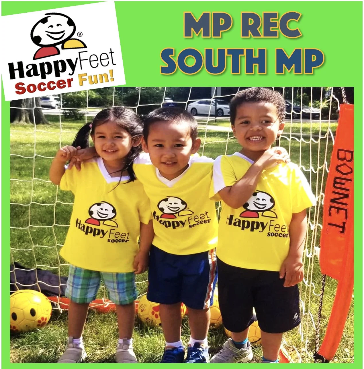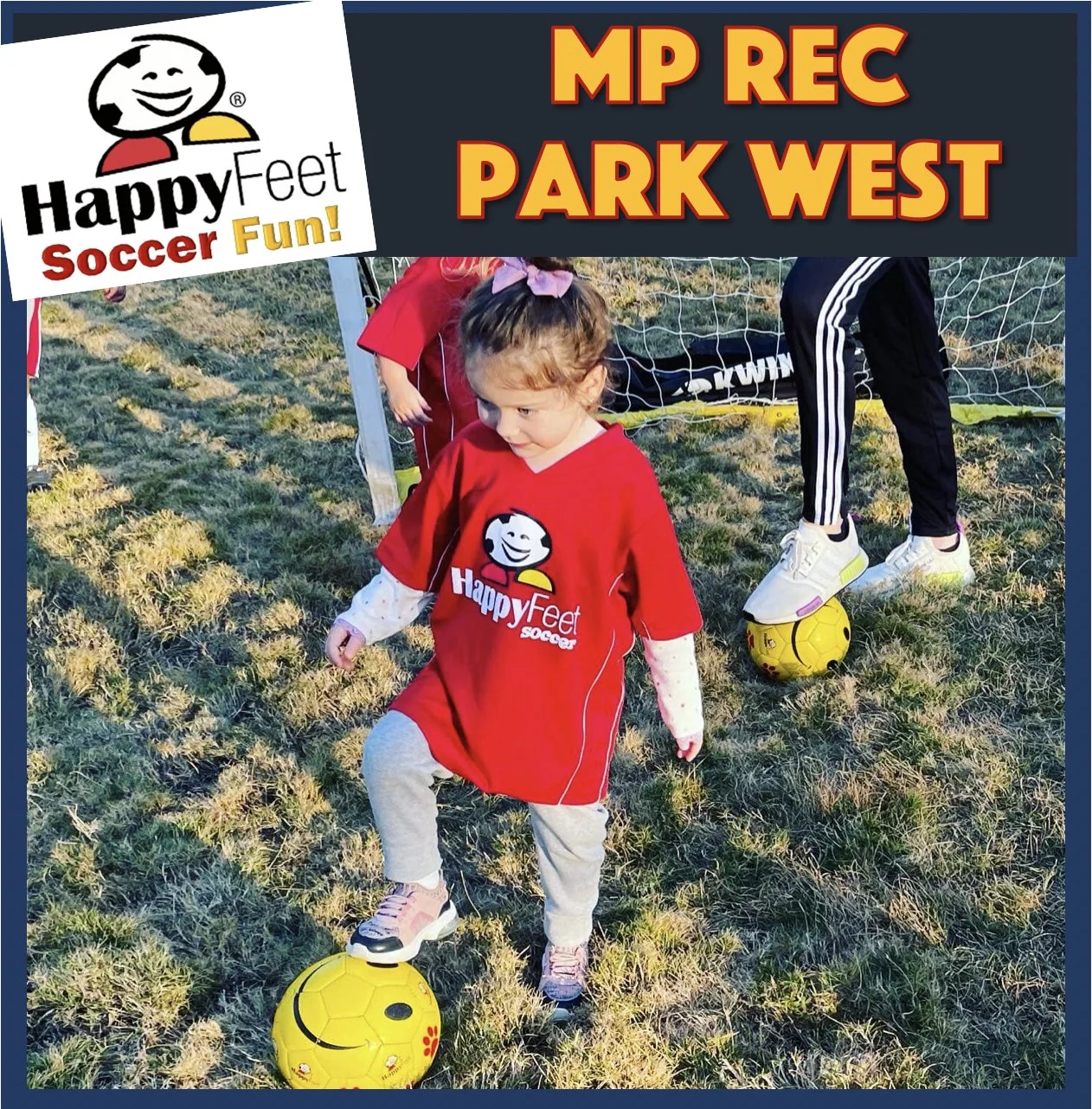 What: HappyFeet is an exciting soccer program specifically designed to encourage the rapidly developing imagination of young people. Class curriculum uses popular stories, songs, nursery rhymes, adventures, and fun games to teach young players real soccer skills and inspire a love of physical fitness.